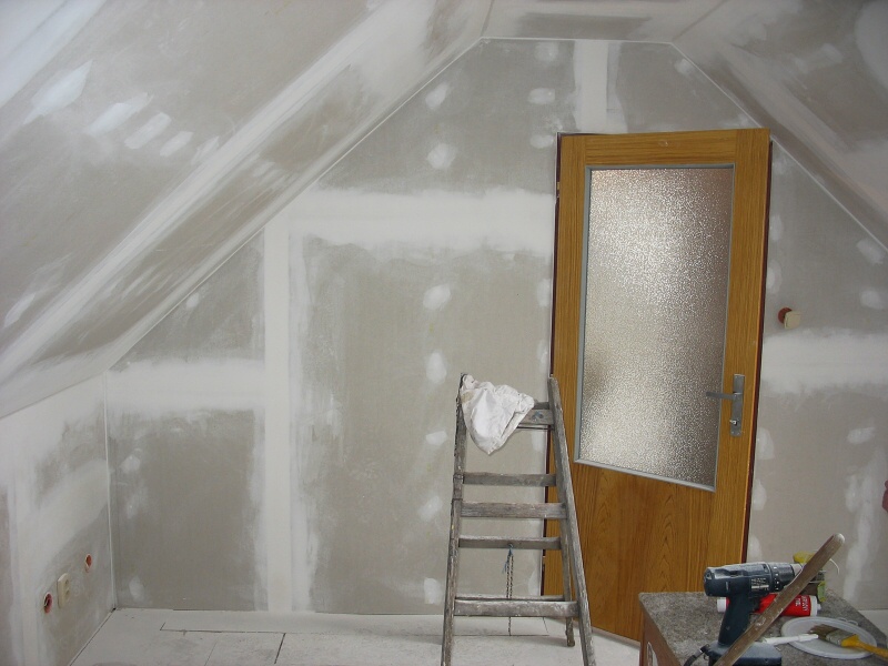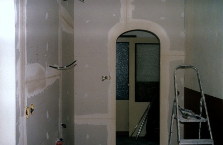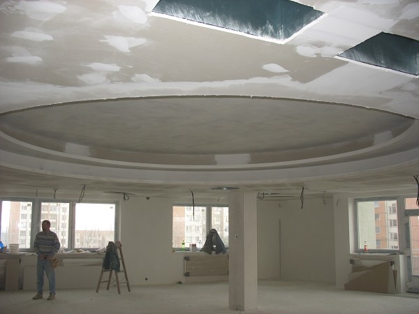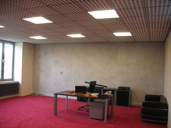 Použití gletovaných omítek, kazetových podhledů při rekonstrukci kanceláří firmy ROTRADE v Uherském Brodě.