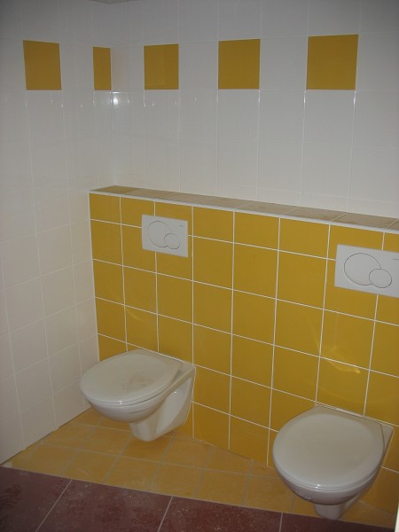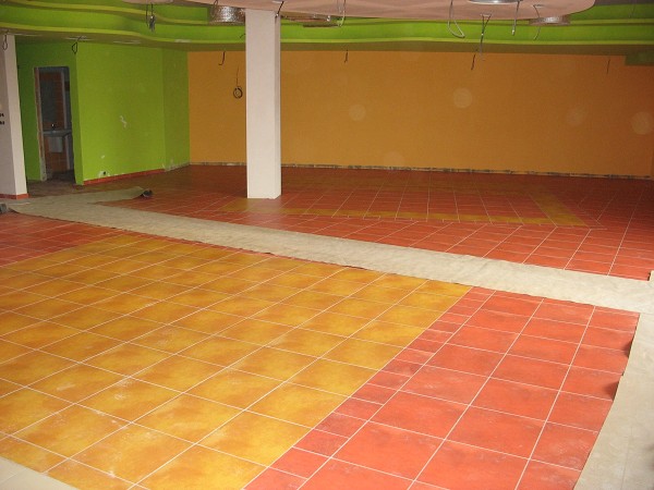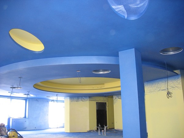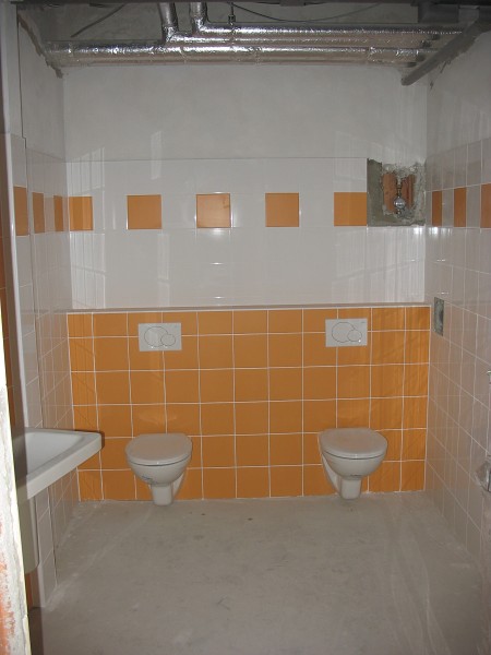 Příklad realizace sádrokartonových podhledů, dlažby a obkladů na Komerčním domě ve Zlíně (kombinace herny, pivnice a cukrárny).